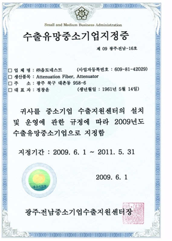 인증 | 수출 유망 중소기업 지정증 페이지 정보 작성자 관리자 작성일10-10-15 09:16 조회17,713회 댓글0건 관련링크 이전글 다음글 목록 본문 수출 유망 중소기업 지정증 댓글목록 등록된 댓글이 없습니다. 이전글 다음글 목록
