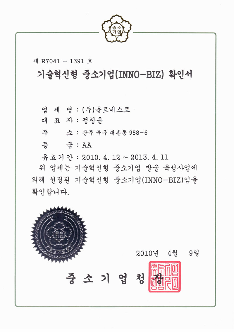 인증 | 기술혁신형 중소기업 확인서 페이지 정보 작성자 관리자 작성일10-10-15 09:18 조회17,356회 댓글0건 관련링크 이전글 다음글 목록 본문 기술혁신형 중소기업 확인서 댓글목록 등록된 댓글이 없습니다. 이전글 다음글 목록