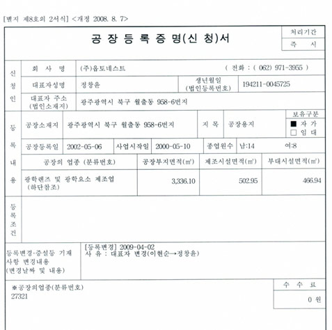 인증 | 공장등록증 페이지 정보 작성자 관리자 작성일10-10-15 09:21 조회16,800회 댓글0건 관련링크 이전글 다음글 목록 본문 공장등록증 댓글목록 등록된 댓글이 없습니다. 이전글 다음글 목록