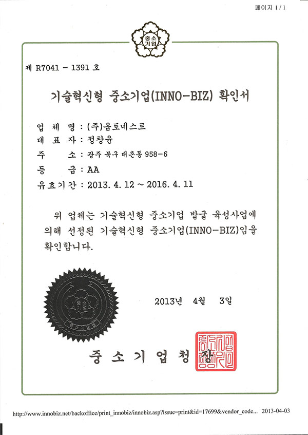 인증 | 기술혁신형 중소기업(INNO-Biz)확인서 페이지 정보 작성자 관리자 작성일13-05-23 09:29 조회16,538회 댓글0건 관련링크 이전글 다음글 목록 본문 기술혁신형 중소기업(INNO-Biz)확인서 댓글목록 등록된 댓글이 없습니다. 이전글 다음글 목록