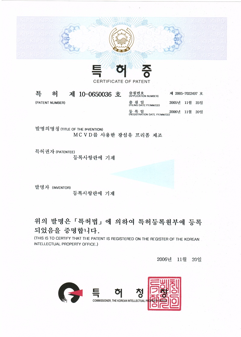 특허 | (대한민국) MCVD를 사용한 광섬유 프리폼 제조 페이지 정보 작성자 관리자 작성일11-08-05 21:18 조회15,920회 댓글0건 관련링크 이전글 다음글 목록 본문 (대한민국) MCVD를 사용한 광섬유 프리폼 제조 댓글목록 등록된 댓글이 없습니다. 이전글 다음글 목록
